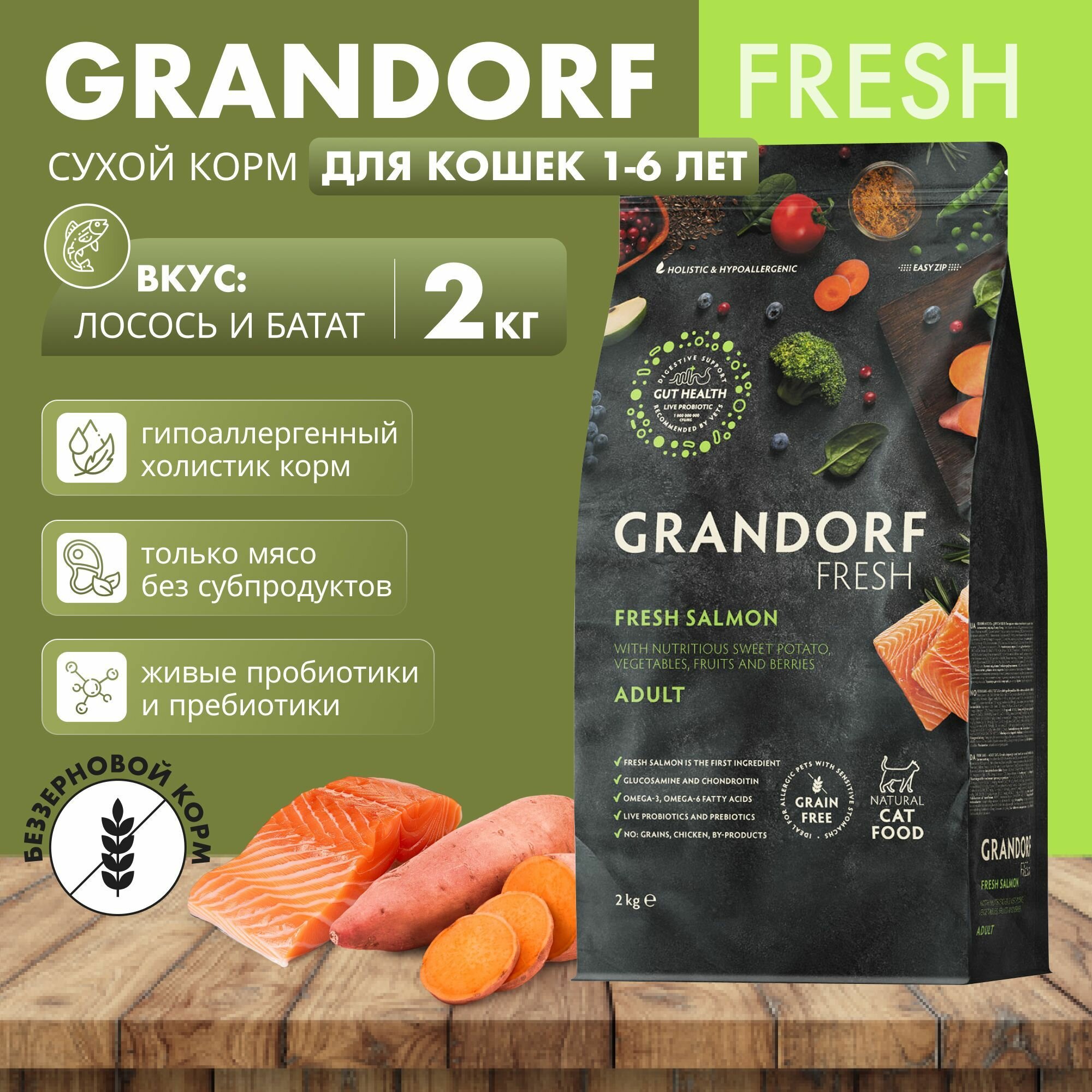 GRANDORF Fresh Корм сухой для кошек с лососем и бататом, 2 кг: сравнение цен, характеристики, фото, актуальное наличие и цены.