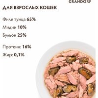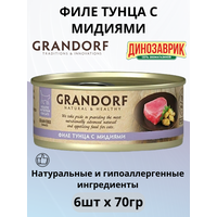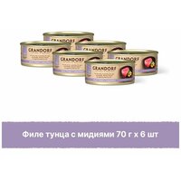 Купить Влажный корм Grandorf Holistic для кошек Филе тунца с мидиями в собственном соку, 6 шт. х 70 г с доставкой по всей России.