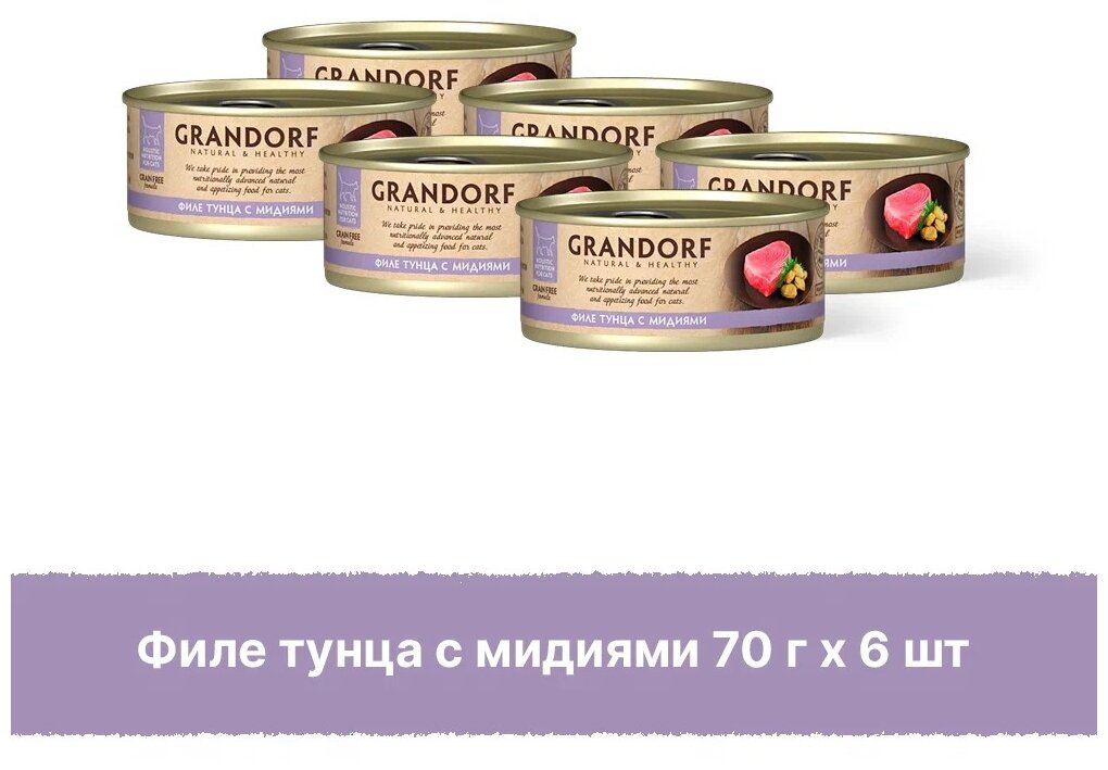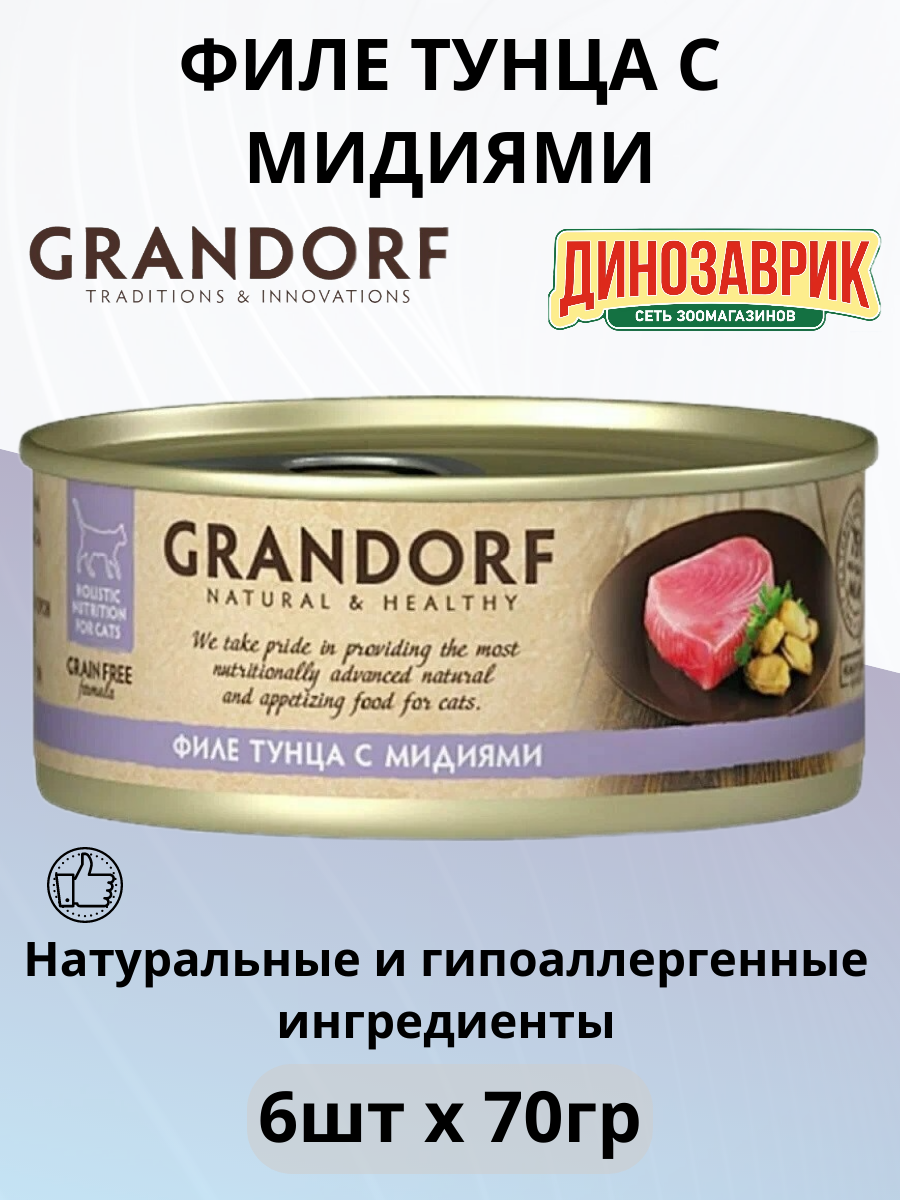 Влажный корм Grandorf Holistic для кошек Филе тунца с мидиями в собственном соку, 6 шт. х 70 г: сравнение цен, характеристики, фото, актуальное наличие и цены.
