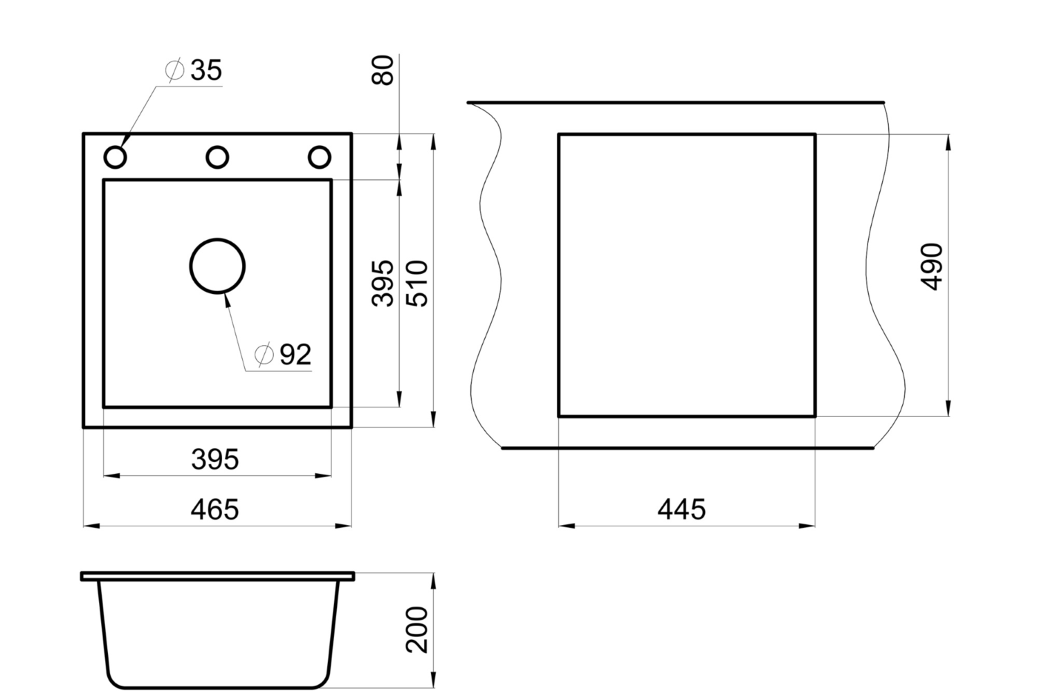 - Диаметр слива: 92 мм