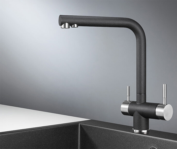 - Переключатель для фильтрованной воды расположен на изливе.