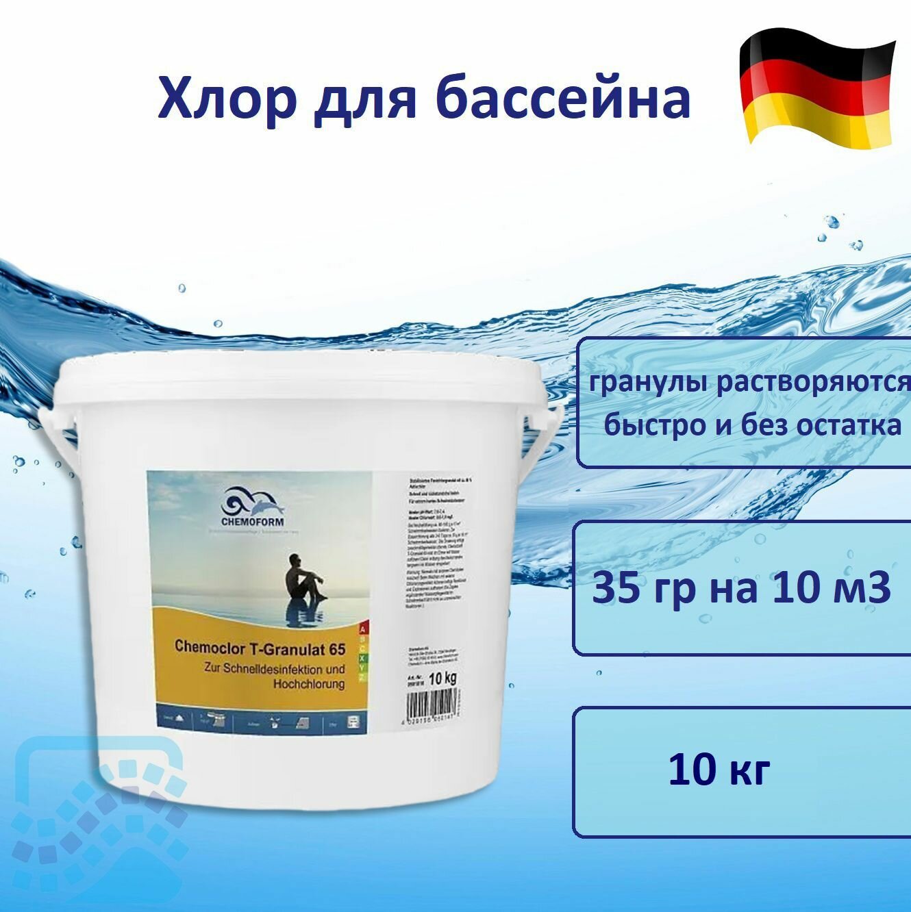 Средство для дезинфекции воды Chemoform Кемохлор Т-65 гранулированный 10 кг 0501010: сравнение цен, характеристики, фото, актуальное наличие и цены.