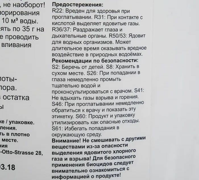 | Назначение | консервирование бассейна, обеззараживание, осветление мутной воды, очистка, против цветения воды |