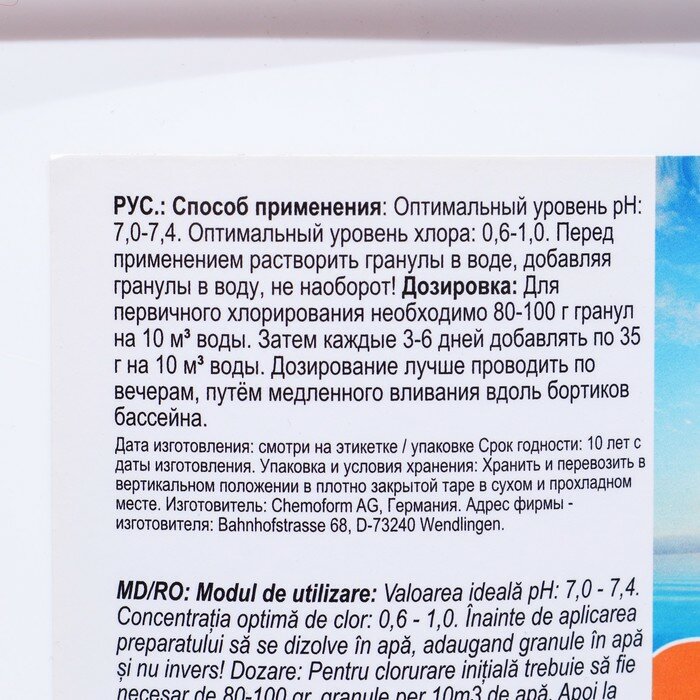 | Назначение | консервирование бассейна, обеззараживание, осветление мутной воды, очистка, против цветения воды |