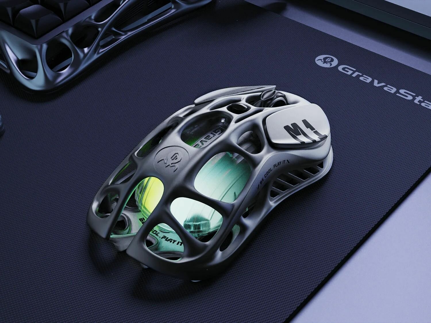 Каркас модели M1 Pro изготовлен из легкого магниевого сплава, что обеспечивает идеальный баланс прочности и молниеносной маневренности. Уникальный дизайн с вырезами сохраняет прохладу в руке, когда она нагревается, а дополнительные тефлоновые накладки для ног гарантируют плавное скольжение по любой поверхности.