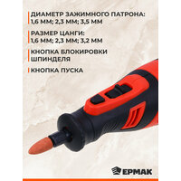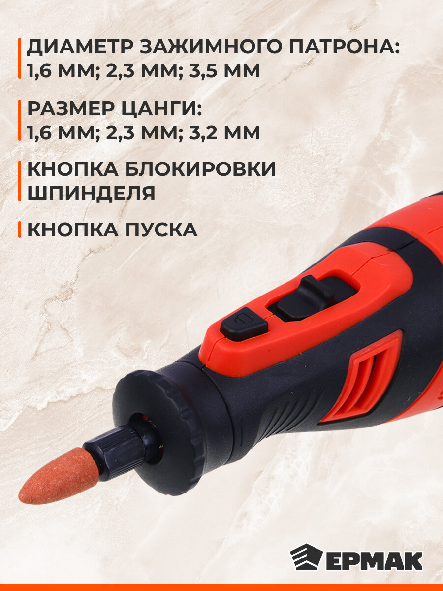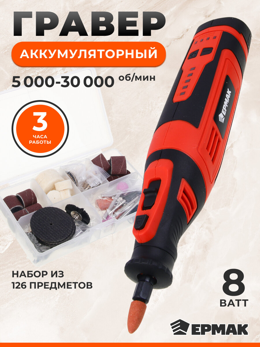 Шлифовальные круги 40 шт. Большие шлифовальные круги 10 шт. Алмазный диск 1 шт. Отрезные фибергласовые диски 6 шт. Отрезные диски 30 шт. Шлифовальные головки из оксида алюминия (3,2 мм) 2 шт. Шлифовальные головки силикон-карбидные (3,2 мм) 4 шт. Шлифовальная головка резиновая (3,2 мм) 1 шт. Алмазные шлифовальные иглы (3,2 мм) 3 шт. Сферическая фреза из быстрорежущей стали (3,2 мм) 1 шт. Сверла из быстрорежущей стали (1,6 мм, 2,3 мм, 3,2 мм) 3 шт. Серебристая стальная щетка (3,2 мм) 1 шт. Нейлоновая щетка (3,2 мм) 1 шт. Фетровые круги 8 шт. Цанги (3,2 мм, 2,3 мм, 1,6 мм) 3 шт. Оправки для отрезного круга 3 шт. Большое резиновое кольцо (3,2 мм) 1 шт. Сверло (3,2 мм) 1 шт. Гаечный ключ 1 шт. Резьбовой стержень (3,2 мм) 1 шт. Держатель для фрезы 1 шт. Защитный кожух 1 шт. Пластиковый кейс 1 шт. Провод UЅВ 1 шт. Гравер 1 шт.