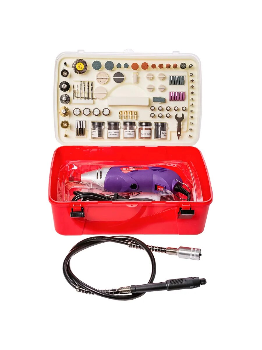 | Комплектация | Дрель-гравер; гибкий вал; набор принадлежностей; Руководство по эксплуатации; кейс |