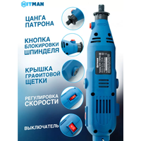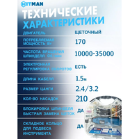 Прямошлифовальная машина Hitman GVH 170PRO представляет собой мощный и универсальный инструмент, предназначенный для шлифовки, полировки и гравировки различных материалов. С мощностью 170 Вт и диапазоном оборотов от 10000 до 35000 об/мин, этот электрогравер позволяет легко справляться с многочисленными задачами, обеспечивая высокую скорость и точность работы.