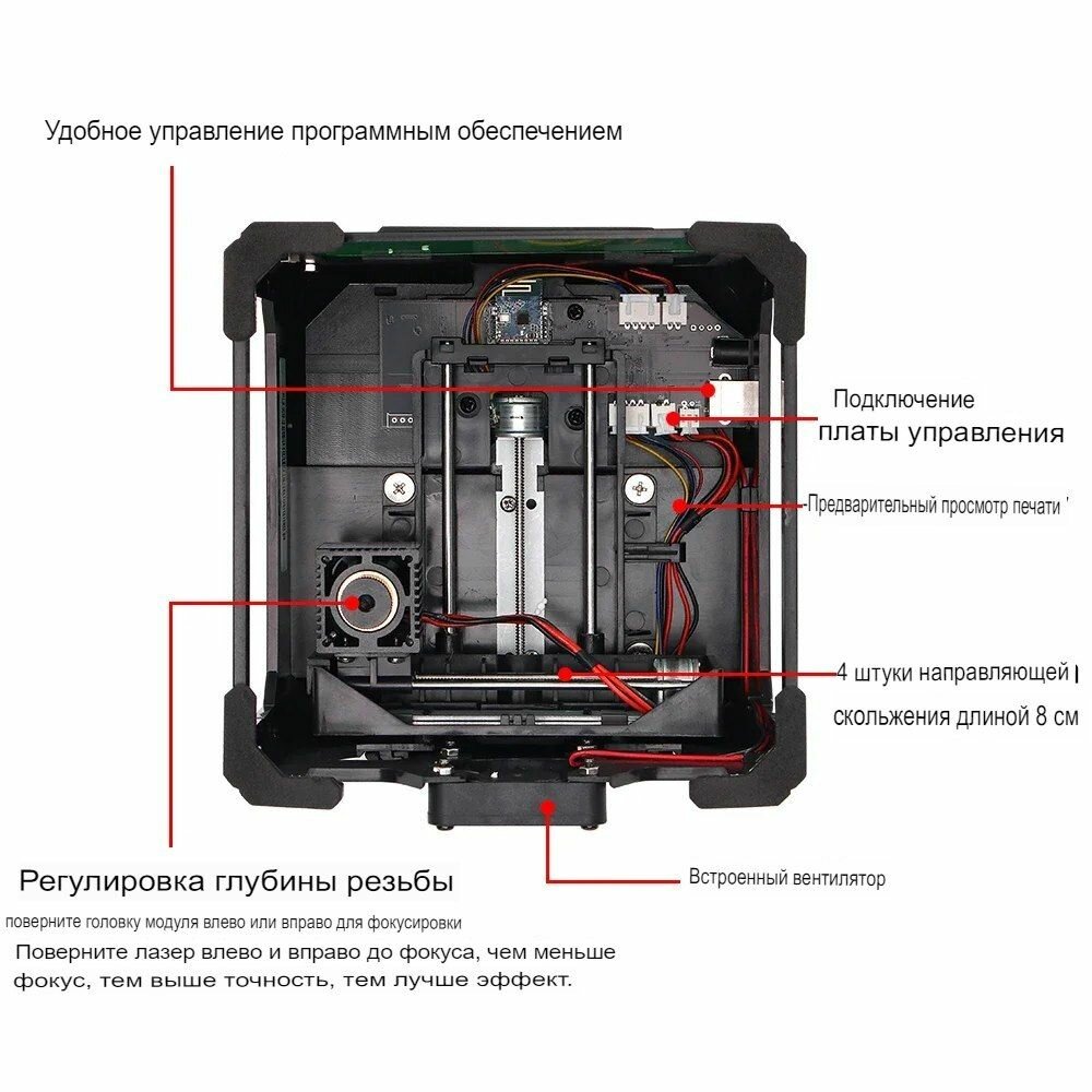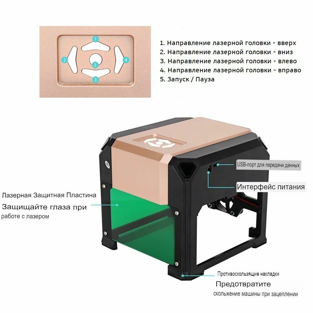 Представляем Вашему вниманию лазерный гравер, конструкция которого выполнена из ABC-пластика и алюминиевого сплава. Эта модель — одна из самых популярных среди мини-граверов. Граверная машинка имеет малый вес и компактный размер, и это является её преимуществом т. к. небольшие размеры позволяют установить граверное устройство дома или в маленькой мастерской. Однако высокая производительность данного лазерного гравировального станка с ЧПУ (числовое программное управление) дает возможность даже построить бизнес на гравировке как профессионалам в гравёрном деле, так и новичкам, поскольку граверное оборудование понятное и легкое в использовании. Лазерная гравировка - техника нанесения различных линий, штрихов, канавок на поверхность материала. Получается это за счет точного и последовательного снимания верхнего слоя материала в точно заданном месте. Из этих элементов складывается рисунок. Наш станок предназначен для гравировки на разных видах материалов (древесина, картон, кожа, пластик, бамбук, резина и т. д.), за исключением стекла, металла и камня. Лазерный станок (ЧПУ станок по дереву) может выгравировать практически любую Вашу фантазию. Лазерный гравер с ЧПУ управляется через компьютер с помощью специальной программы. Мощность модели — 3000 мВт. Рабочая область 80х80 мм. Поддерживаемые форматы: GIF, JPG, PNG, BMP, DIB, ICO. Совместим с Android / iPhone / Windows. Максимальный размер изображений: 1070x1070 пикселей. В комплект поставки входит: лазерный гравер, кабель питания, кабель USB, отвертка, гайки - 4 шт, болты - 4 шт, деревянная доска-2 шт. Портативный лазерный гравер — это удобное и многофункциональное решение для гравировки, предоставляющее массу возможностей для создания надписей и изображений на поверхностях.