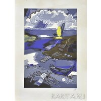 Купить Гравюра винтажная Русский север, авторская линогравюра Иваницкой Татьяны, 1977 г. с доставкой по всей России.
