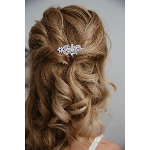 Свадебный гребень серебряного цвета отличный аксессуар для свадебной прически. Благодаря небольшому размеру, гребень будет аккуратно смотреться в Вашей прическе или служить креплением для фаты. А фианиты на гребне, переливающиеся на свету, привлекут внимание и добавят образу легкости и утончённости! Гребень украшение для волос - самое распространенное из всех возможных аксессуаров для невесты. Потому что украшение для волос в виде гребня - очень удобное и универсальное. Гребни украшение для волос можно надеть на свадьбу, вечер, выпускной и в повседневной жизни. Мы советуем вам носить гребень как украшение для волос, потому что резинки не такие красивые и стильные, а украсить ваши прекрасные волосы лучше гребнем украшением для волос. Гребень украшение для волос подходит для любых волос: длинных и коротких, а также для волос очень коротких. Высота: 5 см Ширина: 7 см