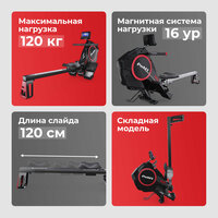 В рабочем состоянии гребной тренажер кардио имеет размеры 172 х 54 х 86 см, а также имеет компактные размеры в сложенном виде и транспортировочные ролики, что позволяет удобно его хранить и легко перемещать по дому.