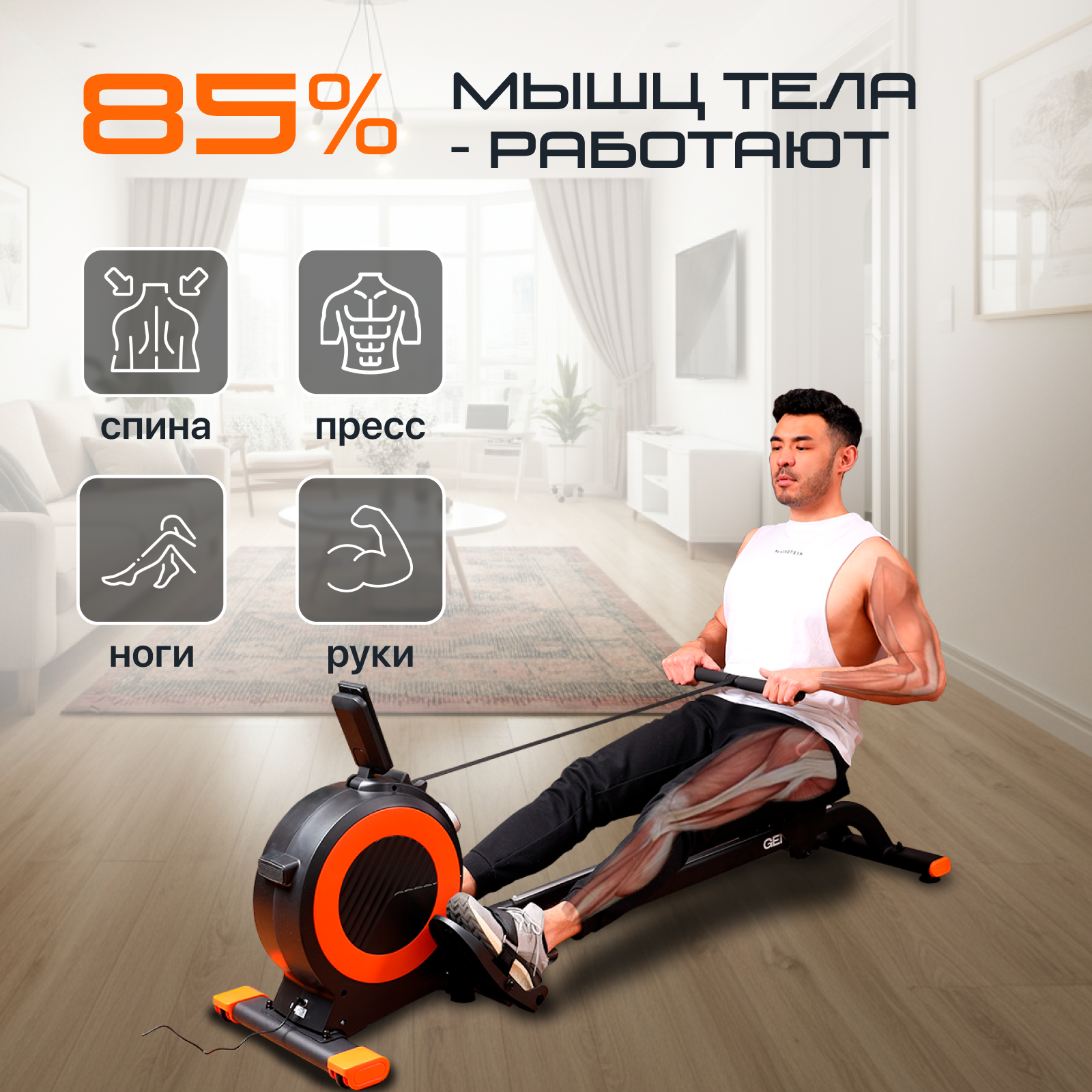 Фирменная гарантия 1 год и энергосбережение (Класс А+). Гребной тренажер Genau Rower RW300 S – ваша дорога к здоровью и отличной форме! Ищете способ тренироваться дома с максимальным комфортом и результативностью? Тогда этот гребной тренажер от немецкого бренда GENAU – ваш идеальный выбор! ✨ Особенности и преимущества Genau Rower RW300 S: Прочная алюминиевая рама – долгий срок службы и устойчивость даже при интенсивных тренировках . Электромагнитная система нагрузки MagnetixPro™ – плавные и эффективные гребки для достижения наилучших результатов . 32 уровня нагрузки – идеально подойдет как для новичков, так и для продвинутых пользователей, регулируя интенсивность тренировки по своему усмотрению . Широкие педали с фиксирующими лентами обеспечивают устойчивость и комфорт даже при активных занятиях . Инновационная консоль TwistKnob™ – следите за своими показателями (время, скорость, дистанция, калории, темп гребков) и всегда будьте в курсе своих достижений! . Bluetooth-совместимость с приложением KINOMAP – тренируйтесь с удовольствием, подключив тренажер к своему смартфону или планшету для интерактивных тренировок . Компактный и удобный в хранении: вертикальная система хранения и транспортировочные ролики делают тренажер удобным даже для малогабаритных помещений . Почему Genau? GENAU – это немецкое качество по доступной цене! Каждый тренажер сделан с вниманием к деталям, чтобы обеспечить вам лучший опыт тренировок прямо у вас дома. Наслаждайтесь долговечными и безопасными тренировками с гарантиями качества от ведущего бренда! Фирменная гарантия – 1 год беззаботных тренировок!