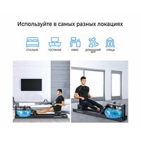 Гребной тренажер DFC Runow 6204 выполнен в чёрном цвете и предназначен для пользователей весом до 125 килограмм. Тренажер компактен и может быть установлен вертикально у стены.