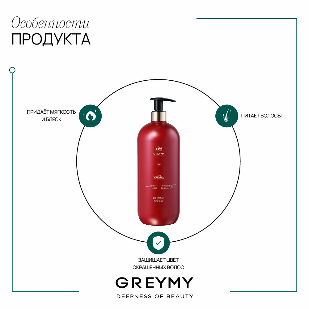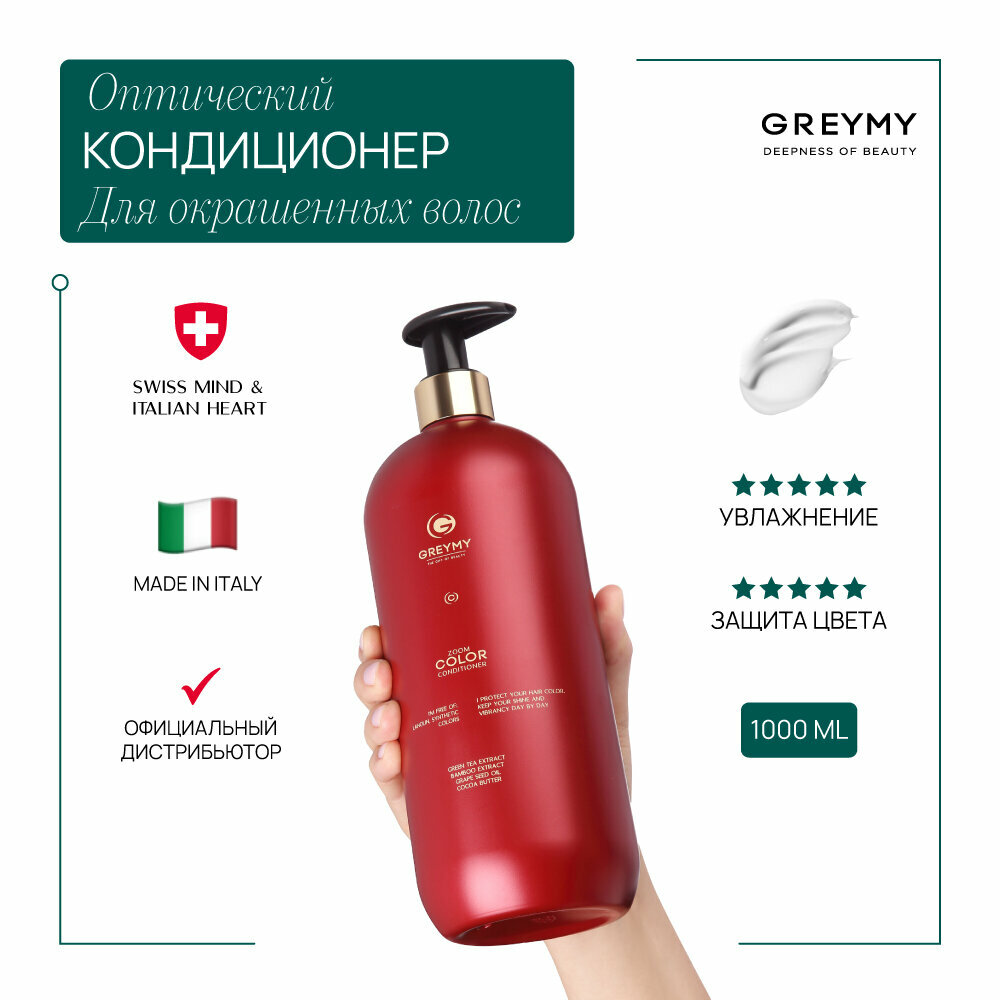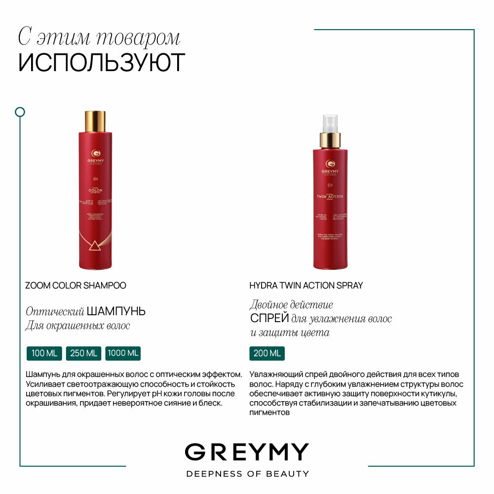 GREYMY Color Zoom Color Conditioner - Кондиционер для усиления цвета окрашенных волос с оптическим эффектом. Усиливает светоотражающую способность и стойкость цветовых пигментов. Насыщает структуру волос необходимыми питательными элементами, уплотняет и запечатывает кутикулу, интенсивно увлажняет окрашенные или осветленные волосы. Стабилизирует PH кожи и волос после окрашивания, придает невероятное сияние и блеск.