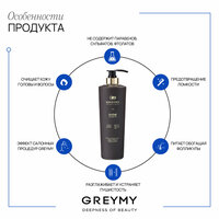 Шампунь для блеска «Greymy» является универсальным средством, подходящим для любых типов волос. Благодаря содержащемуся в нем кератиновому комплексу «Greymy Shine Shampoo» питает и увлажняет волосы, делает их гладкими и блестящими. Уникальная формула, секрет которой в использовании глубинной минеральной воды, исключает выпадение волос, участвует в регулировании работы сальных желез, приводит в норму другие функции кожи головы. Особенно рекомендуется использование «Greymy Shine Shampoo» после посещения салона для поддержания эффекта от специальных процедур. В состав шампуня для блеска входят мягкие павы, препятствующие вымыванию протеина, с их помощью на волосах образуется нанополимерное покрытие, способное защитить от выгорания и преждевременного старения. Кроме того, косметическое средство содержит масло абрикосовых косточек, оказывающее на кожу головы тонизирующее действие. Объем флакона — 800 мл.