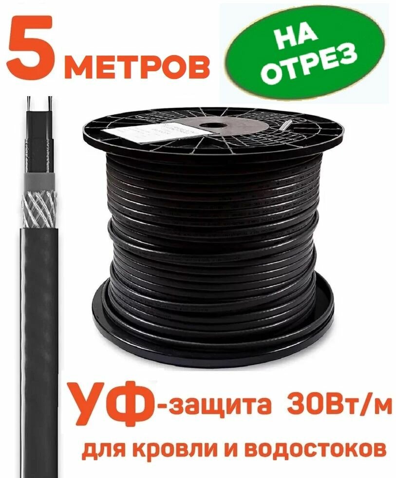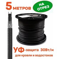 Купить Греющий кабель 5 м для кровли, водостоков саморегулирующий с УФ-защитой, 30 Вт/м, на отрез с доставкой по всей России. Греющий кабель 5 м для кровли, водостоков саморегулирующий с УФ-защитой, 30 Вт/м, на отрез: сравнение цен, характеристики, фото, актуальное наличие и цены.