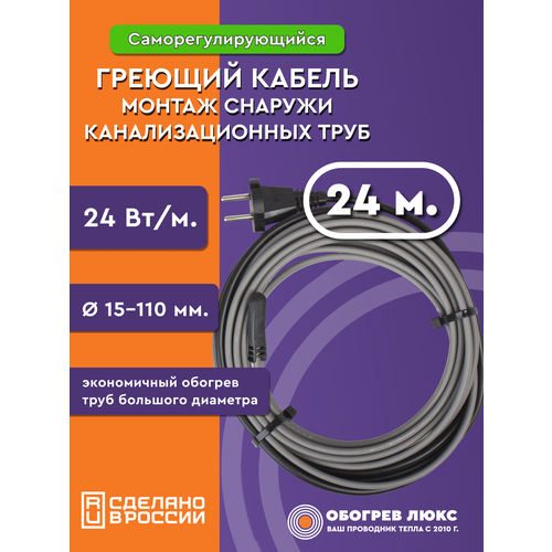 Купить Греющий кабель для канализации на трубу 24 м 24 Вт/м саморегулирующийся готовый комплект ТМ Обогрев Люкс с доставкой по всей России.