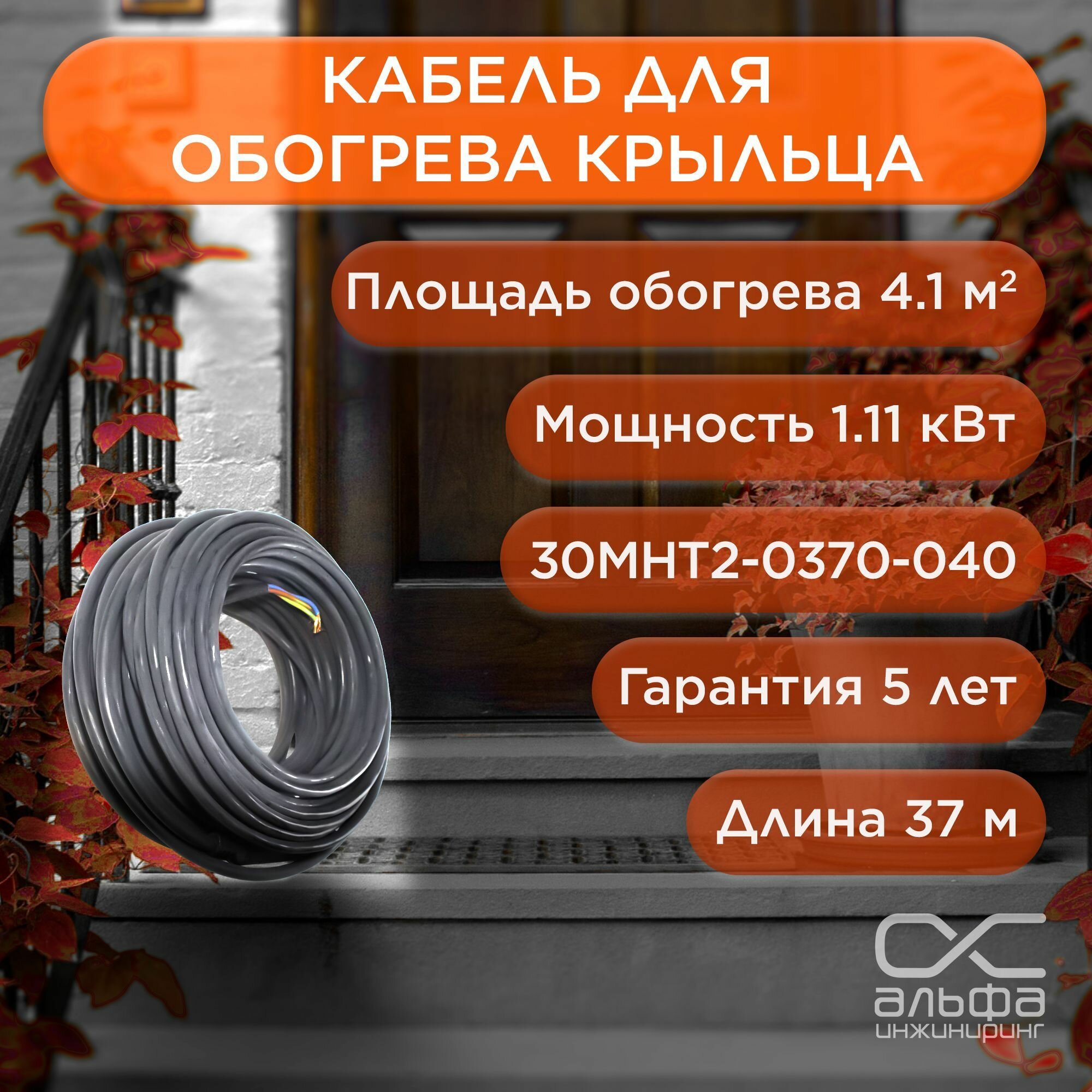 Греющий кабель для водостока и крыльца 30 МНТ2 37м/1110 Вт. Обогрев ступенек и кровли