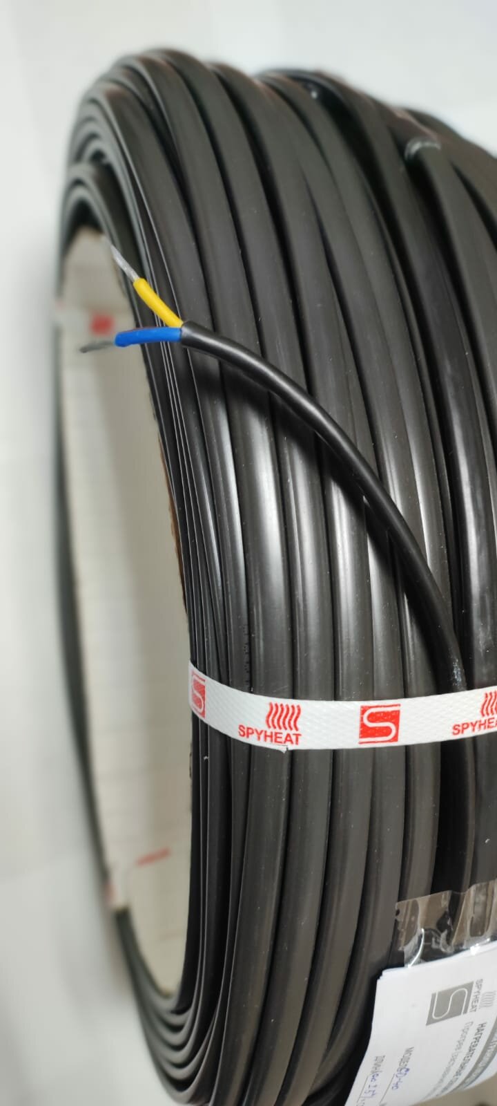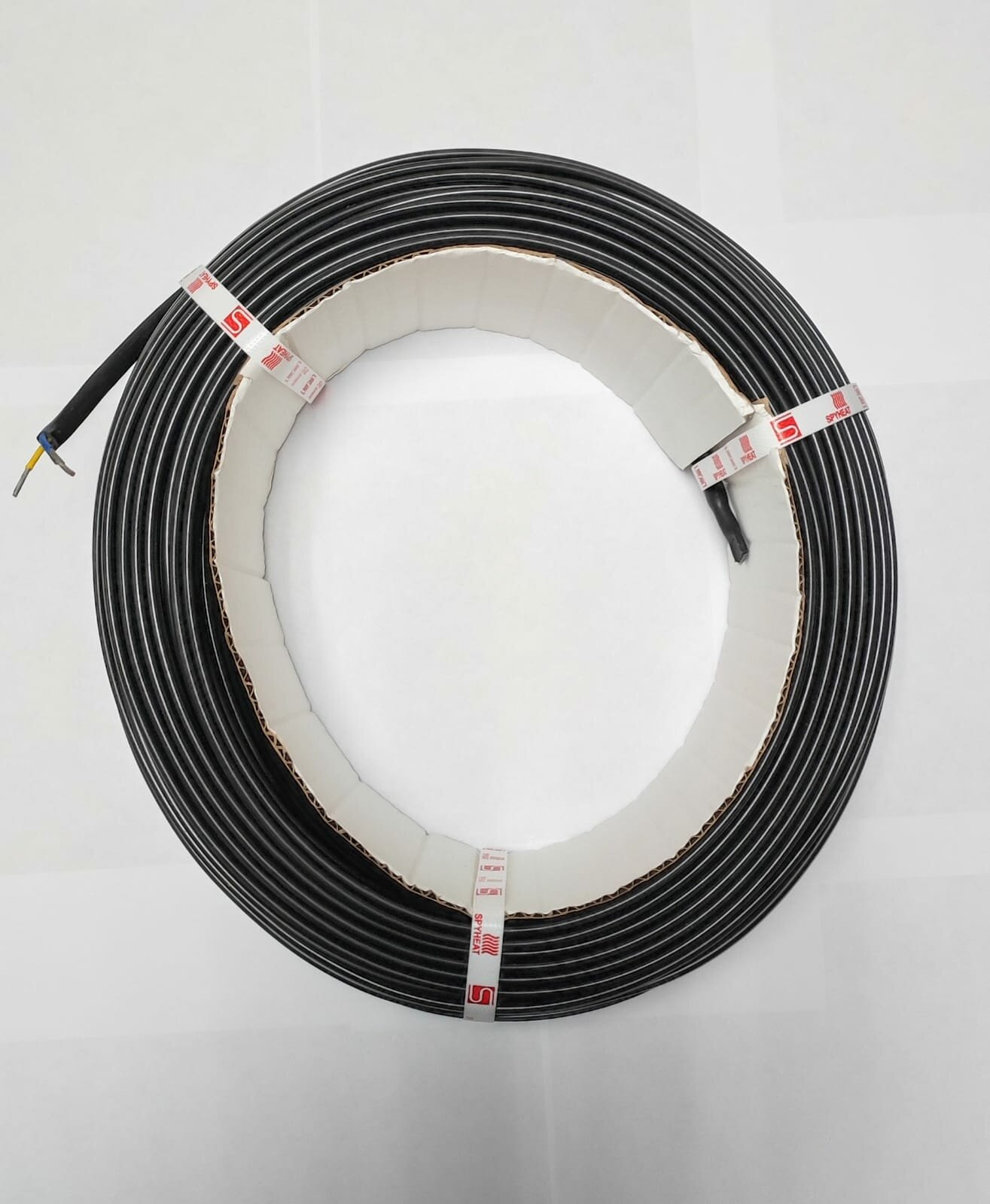 Кабель SPM-40- резистивный нагревательный кабель, мощностью 40 Ватт на погонный метр, применяемый для затвердевания бетона при бетонировании зимой. Кабель крепиться к арматуре перед заливкой бетона не глубже 20 см от поверхности. При заливке бетонных плит обычно расходуется 4-5 погонных метра кабеля на 1 кв/м площади плиты (шаг укладки 20-25см). Для прогрева 1 кубического метра монолитного бетона ориентировочно требуется в среднем 1,3 кВт (от 0,8 до 1,5 кВт) мощности, это зависит от толщины и материала опалубки, устройства парника, температуры и ветра, также важно учитывать и применяемые присадки для бетона. В среднем при заливке балок и колон (без тонких расчетов) кабель SPM-40 наматывается на арматуру с шагом 20-25 сантиметров. SPM подключается напрямую к питающему напряжению 220 Вольт без промежуточных трансформаторов. После набора бетоном прочности питающий конец отрезается.