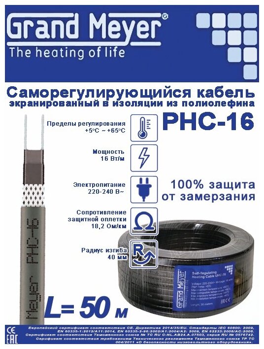 Купить Греющий кабель Grand Meyer PHC-16 6м на трубу саморегулирующийся с доставкой по всей России. Греющий кабель Grand Meyer PHC-16 6м на трубу саморегулирующийся: сравнение цен, характеристики, фото, актуальное наличие и цены.
