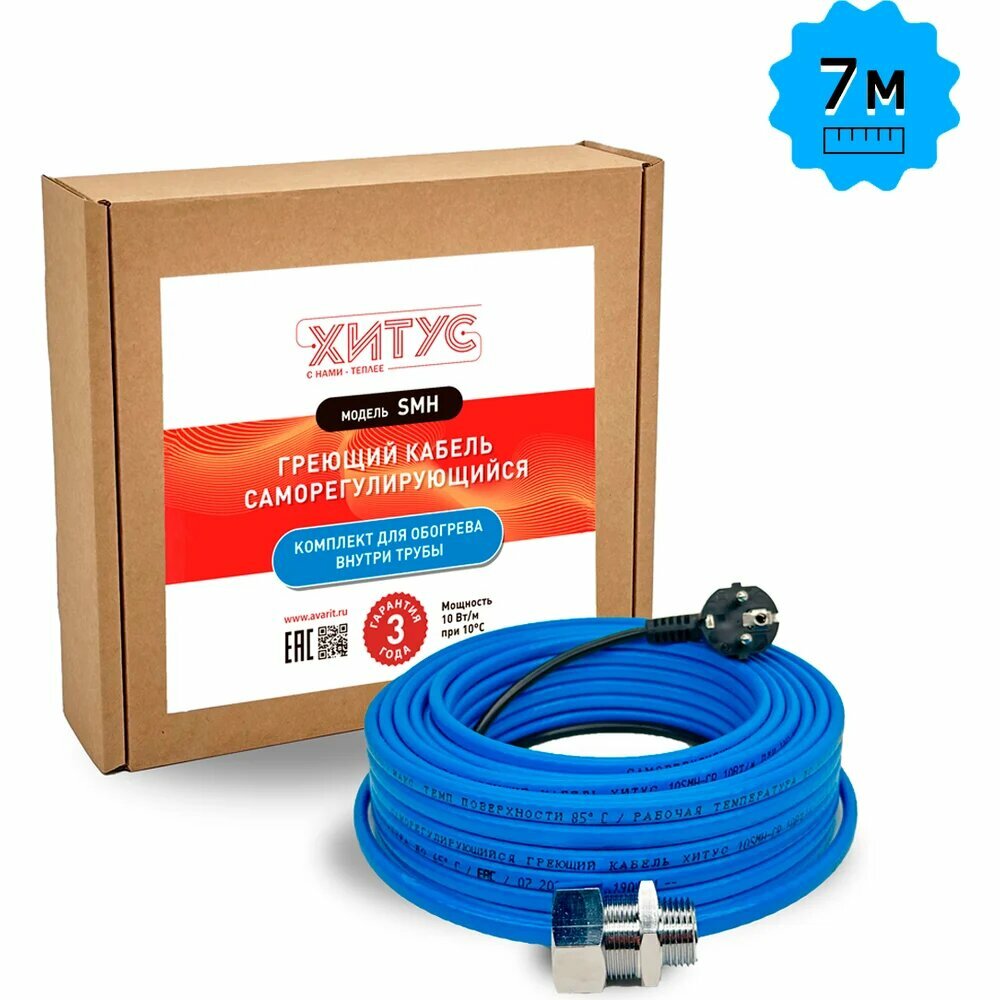 Греющий кабель Хитус SMH 70Вт 7м HASMH10007, с контролем качества