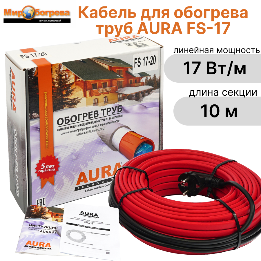 Греющий кабель на трубу 10 м AURA FS 17 Вт/м с евровилкой саморегулирующийся: сравнение цен, характеристики, фото, актуальное наличие и цены.
