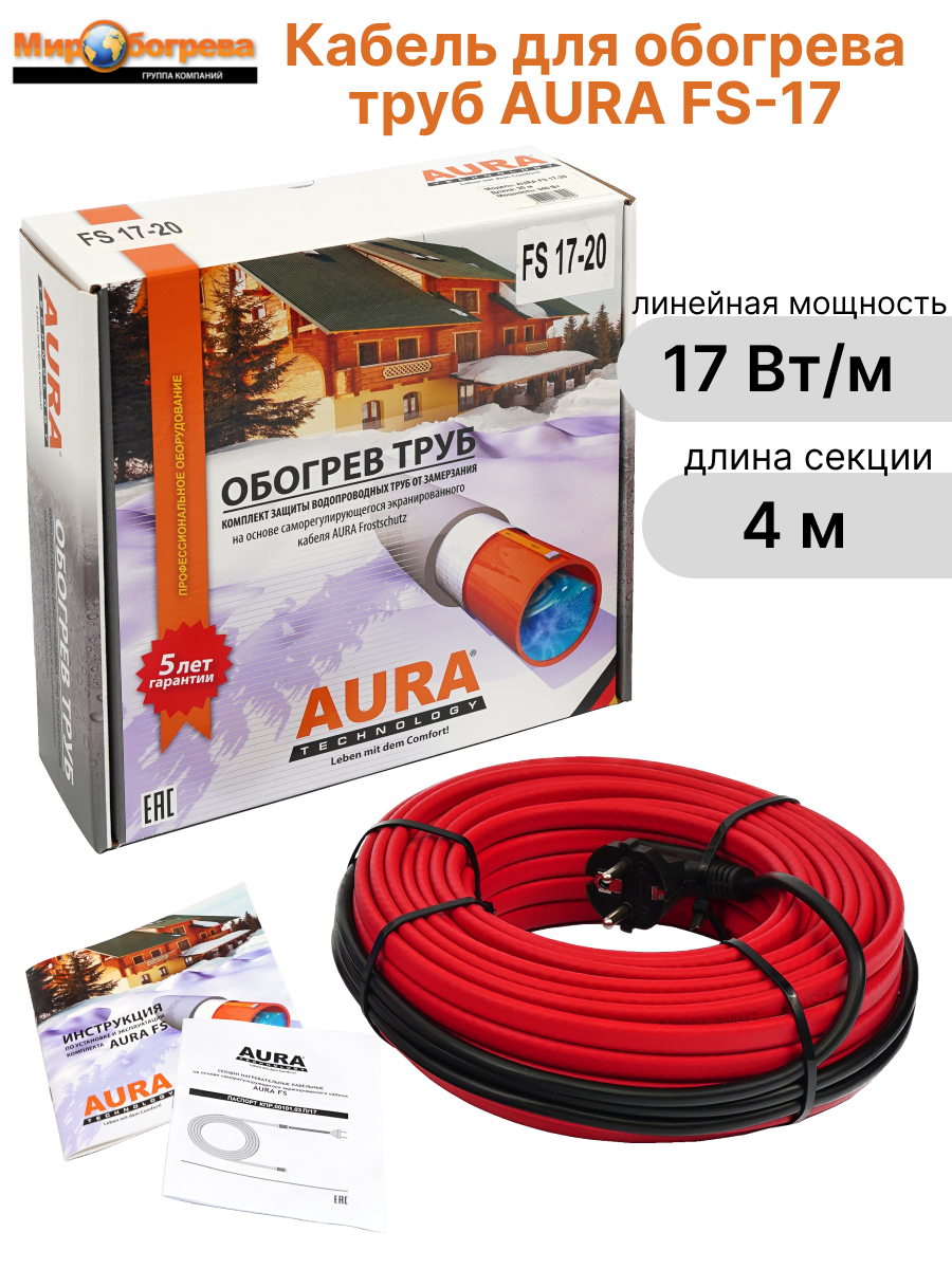 Греющий кабель на трубу 4 м AURA FS 17 Вт/м с евровилкой саморегулирующийся: сравнение цен, характеристики, фото, актуальное наличие и цены.