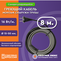 Греющий кабель на трубу 8 м 16 Вт/м саморегулирующийся для водопровода готовый комплект ТМ Обогрев Люкс: сравнение цен, характеристики, фото, актуальное наличие и цены.