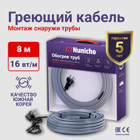 Греющий кабель на трубу NUNICHO 16 Вт/м 8 м, готовый комплект саморегулирующийся: сравнение цен, характеристики, фото, актуальное наличие и цены.