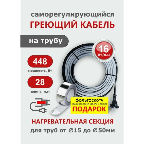 Греющий кабель на трубу СТН 28 м 448 Вт