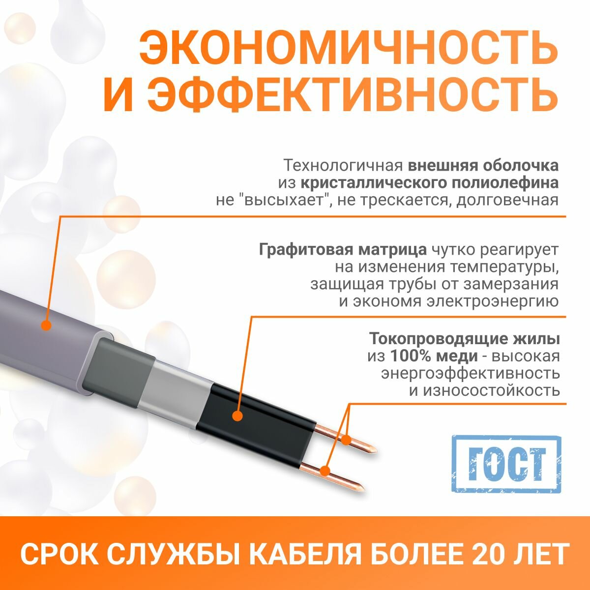 Купить Греющий кабель на трубу Тепло и Точка 25 м 16 Вт/м, саморегулирующийся, неэкранированный, на отрез с доставкой по всей России.