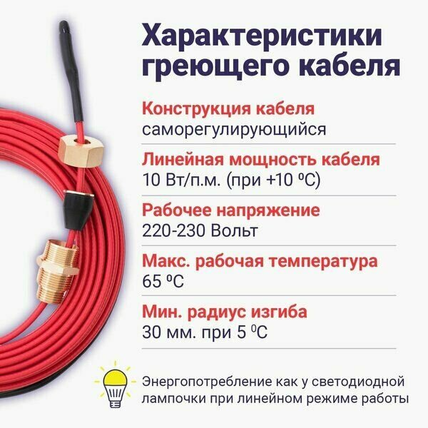 Греющий кабель саморегулирующийся Nunicho 10 Вт/м, 2 метра: сравнение цен, характеристики, фото, актуальное наличие и цены.