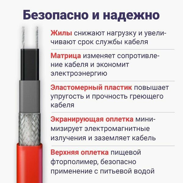 Купить Греющий кабель саморегулирующийся Nunicho 10 Вт/м, 2 метра с доставкой по всей России.
