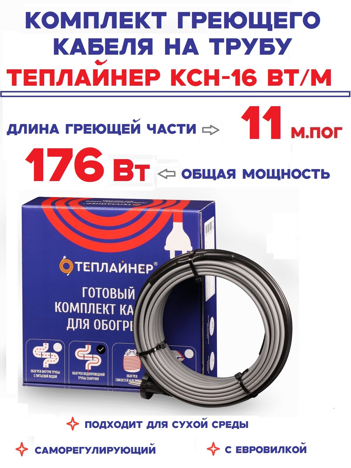 Греющий кабель саморегулирующийся Теплайнер КСН-16, 11 м 176 Вт для обогрева труб снаружи: сравнение цен, характеристики, фото, актуальное наличие и цены.