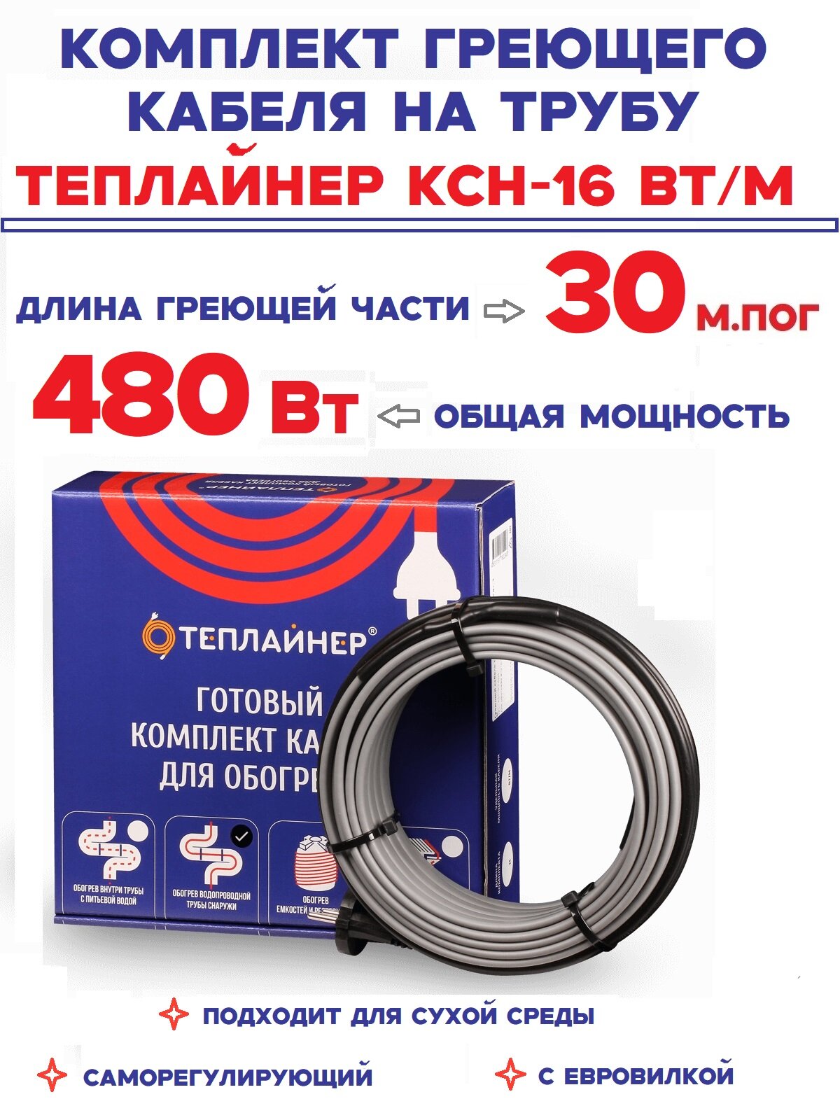 Греющий кабель саморегулирующийся Теплайнер КСН-16, 30 м 480 Вт для обогрева труб снаружи: сравнение цен, характеристики, фото, актуальное наличие и цены.