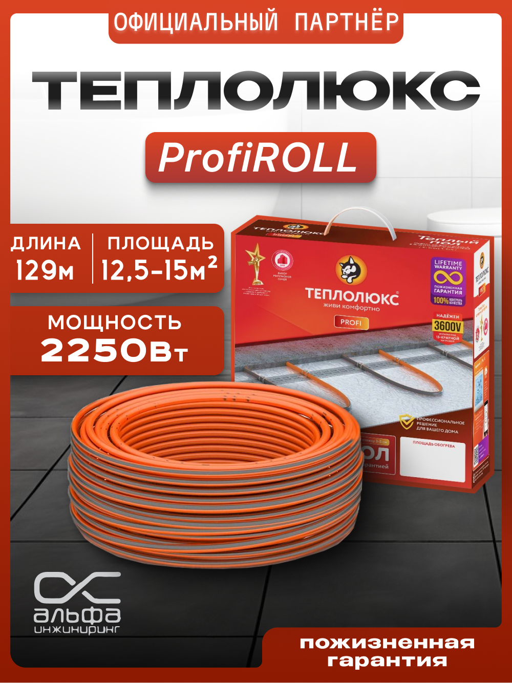 Теплолюкс ProfiRoll 129,0 м/2250 Вт. Греющий кабель для теплого пола под плитку.: сравнение цен, характеристики, фото, актуальное наличие и цены.