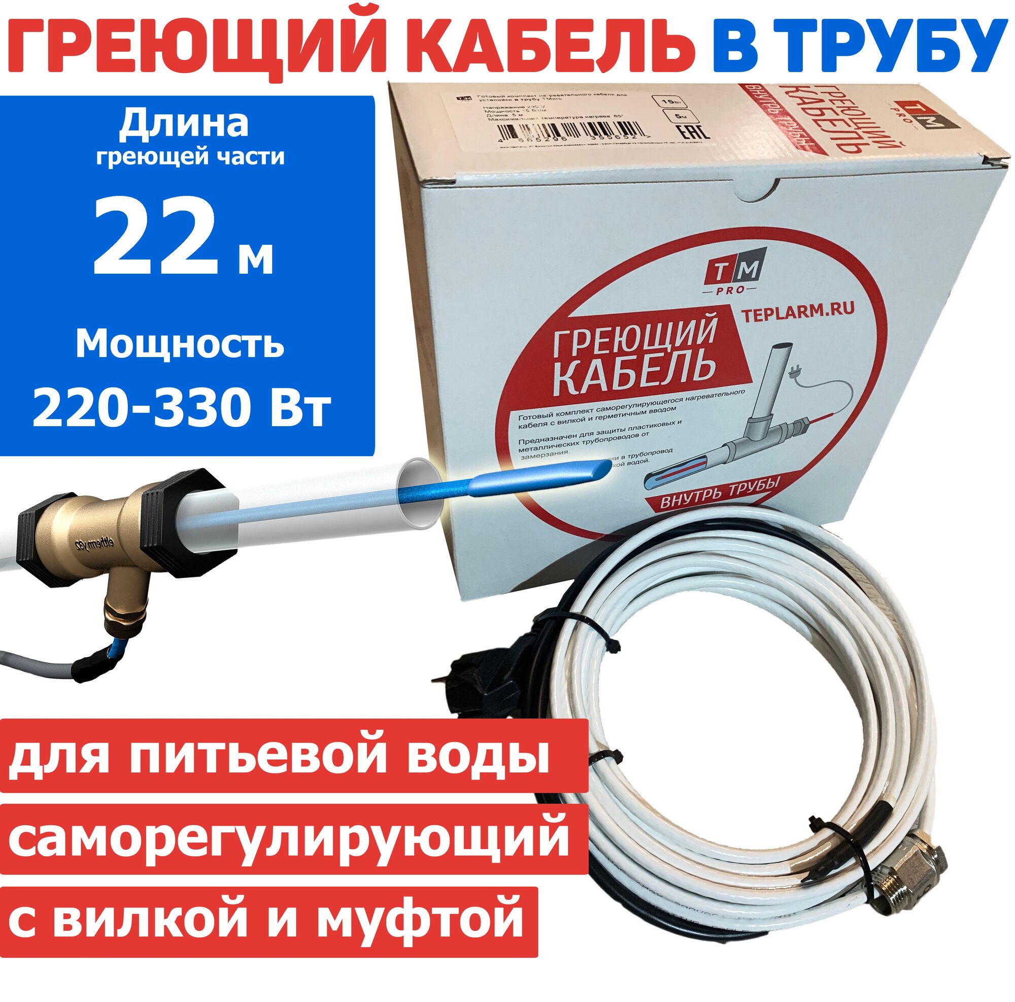 Купить Греющий кабель в трубу 22 м 220 Вт с сальником и вилкой саморегулирующий готовый комплект с доставкой по всей России.