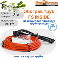 Греющий кабель в трубу 3 м AURA FS INSIDE (сальник 1/2-3/4 в комплекте, для питьевой воды): сравнение цен, характеристики, фото, актуальное наличие и цены.