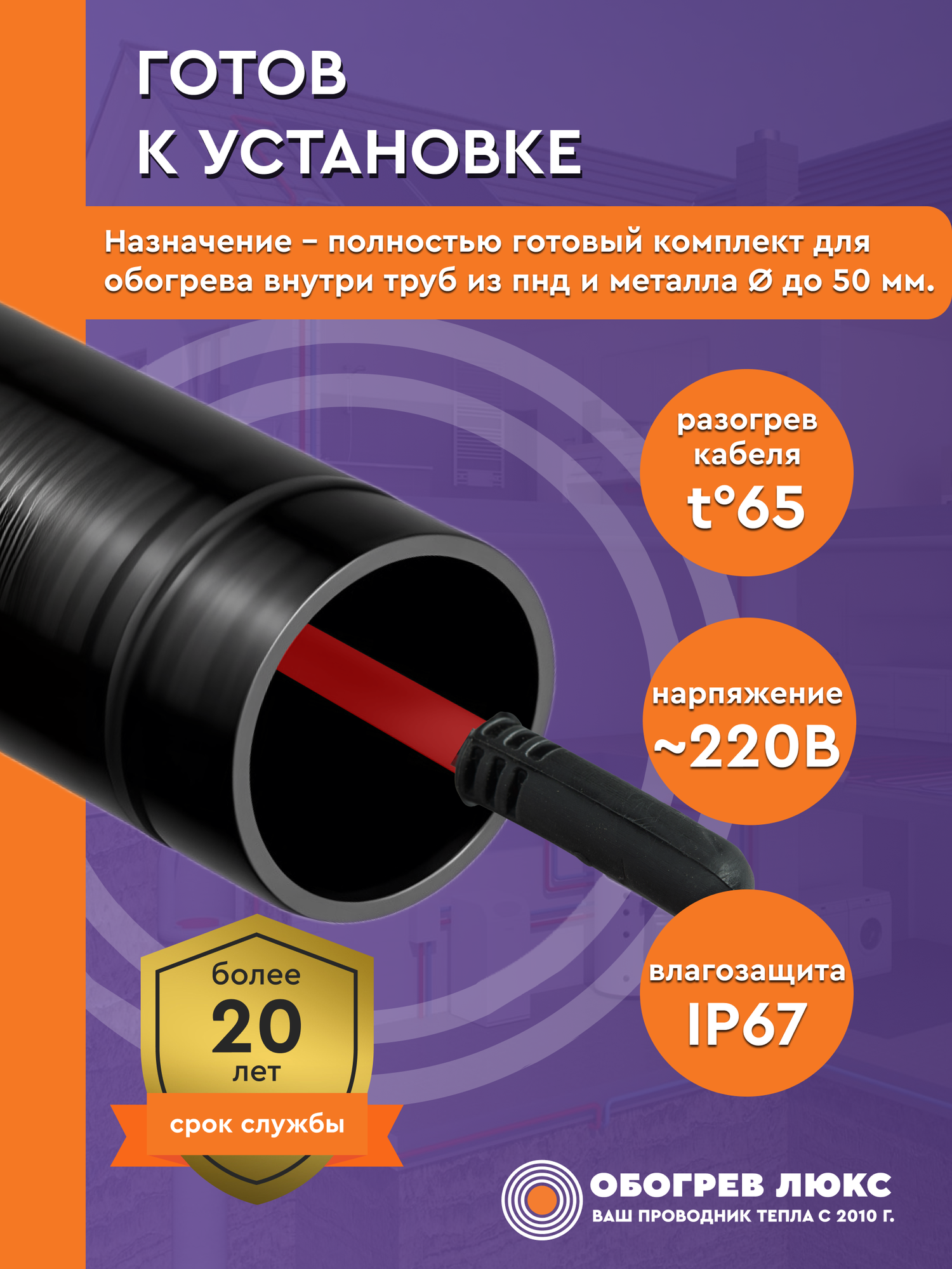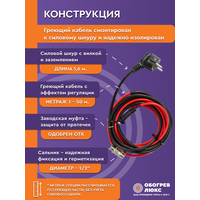 Греющий кабель в трубу с сальником 1 м 11 Вт/м самрег для питьевого водопровода готовый комплект ТМ Обогрев Люкс: сравнение цен, характеристики, фото, актуальное наличие и цены.