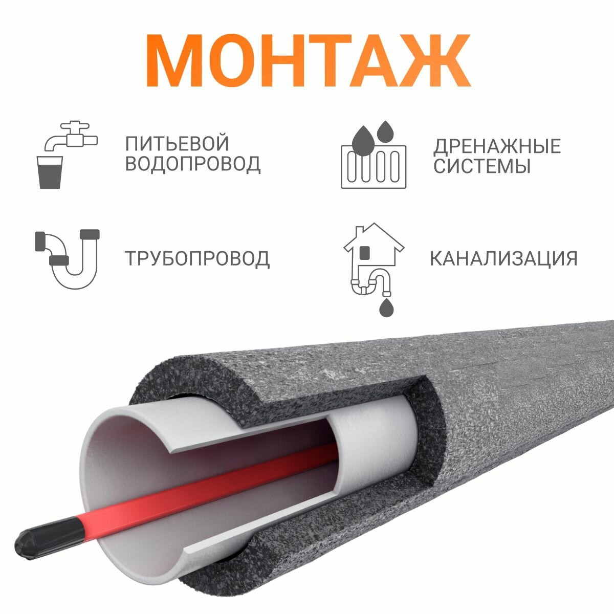 Купить Греющий кабель в трубу Тепло и Точка 5 м 15 Вт/м, Южная Корея, экранированный саморегулирующийся, на отрез для питьевой трубы с доставкой по всей России.