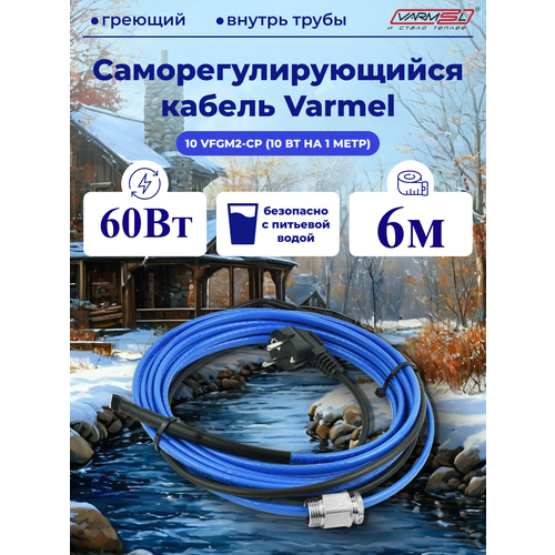 Греющий кабель Varmel 10VFGM2-CP, для водопровода, внутри трубы 6м, 60Вт: сравнение цен, характеристики, фото, актуальное наличие и цены.