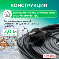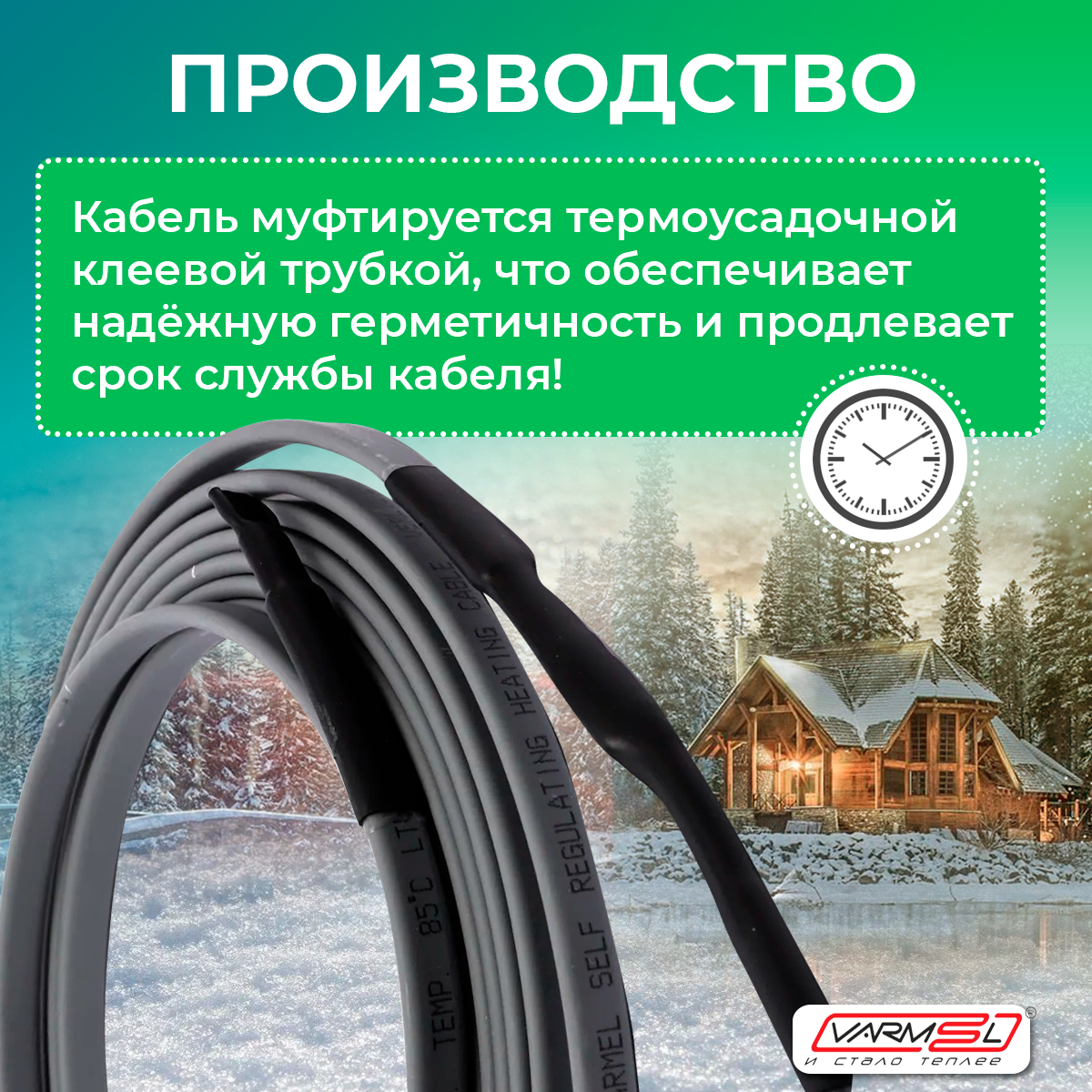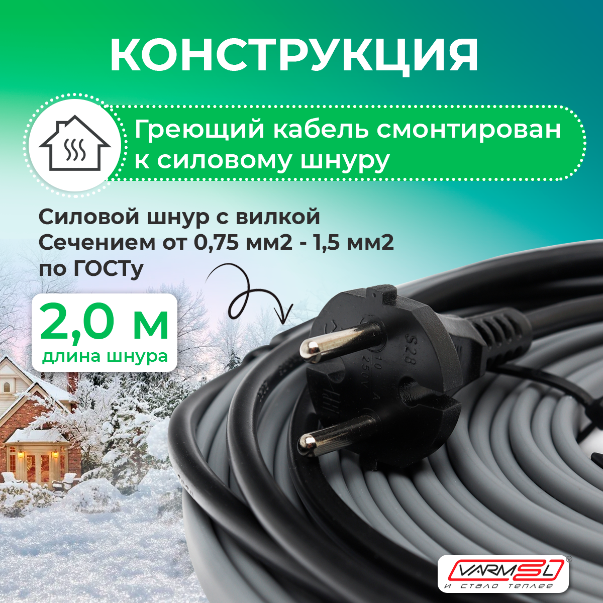 - нагревательная секция из саморегулирующегося греющего кабеля VSRL30-2 (греющего), мощностью 30 Вт/м - с силовым проводом 2 метра и литой вилкой - паспорт изделия (гарантийный талон)