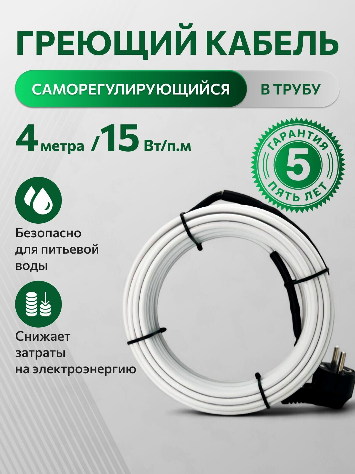 Греющий саморегулирующийся кабель внутрь трубы TM PRO — 15Вт/м (4м. комплект): сравнение цен, характеристики, фото, актуальное наличие и цены.