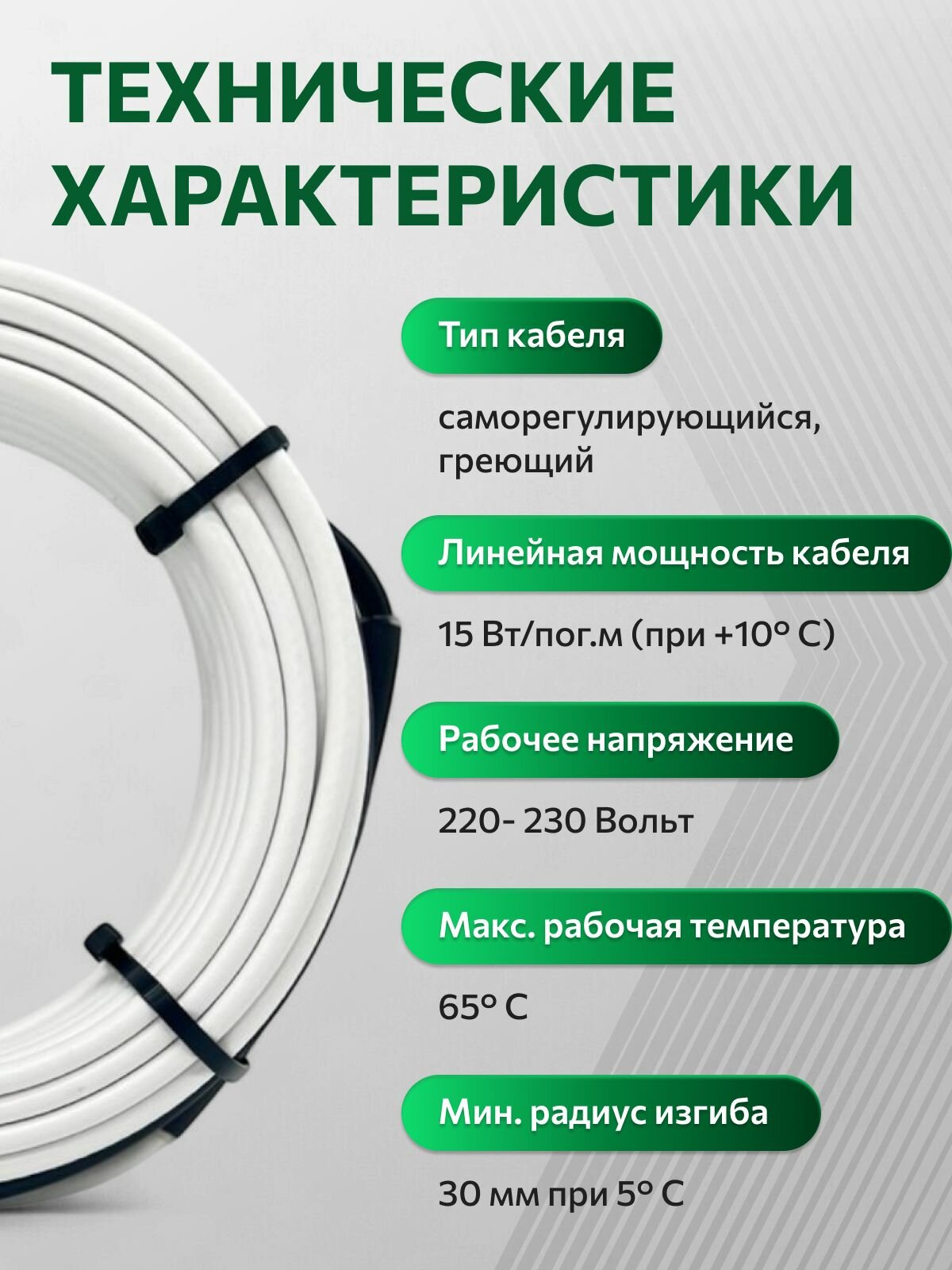 Греющий саморегулирующийся кабель внутрь трубы TM PRO — 15Вт/м (5м. комплект): сравнение цен, характеристики, фото, актуальное наличие и цены.