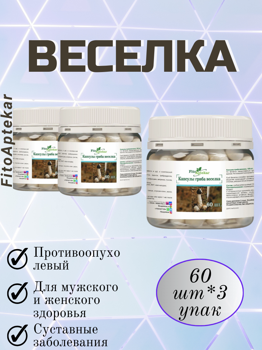 Гриб веселка в капсулах Фито-Аптекарь, для мужского и женского здоровья, 60 шт*3 упаковки: сравнение цен, характеристики, фото, актуальное наличие и цены.