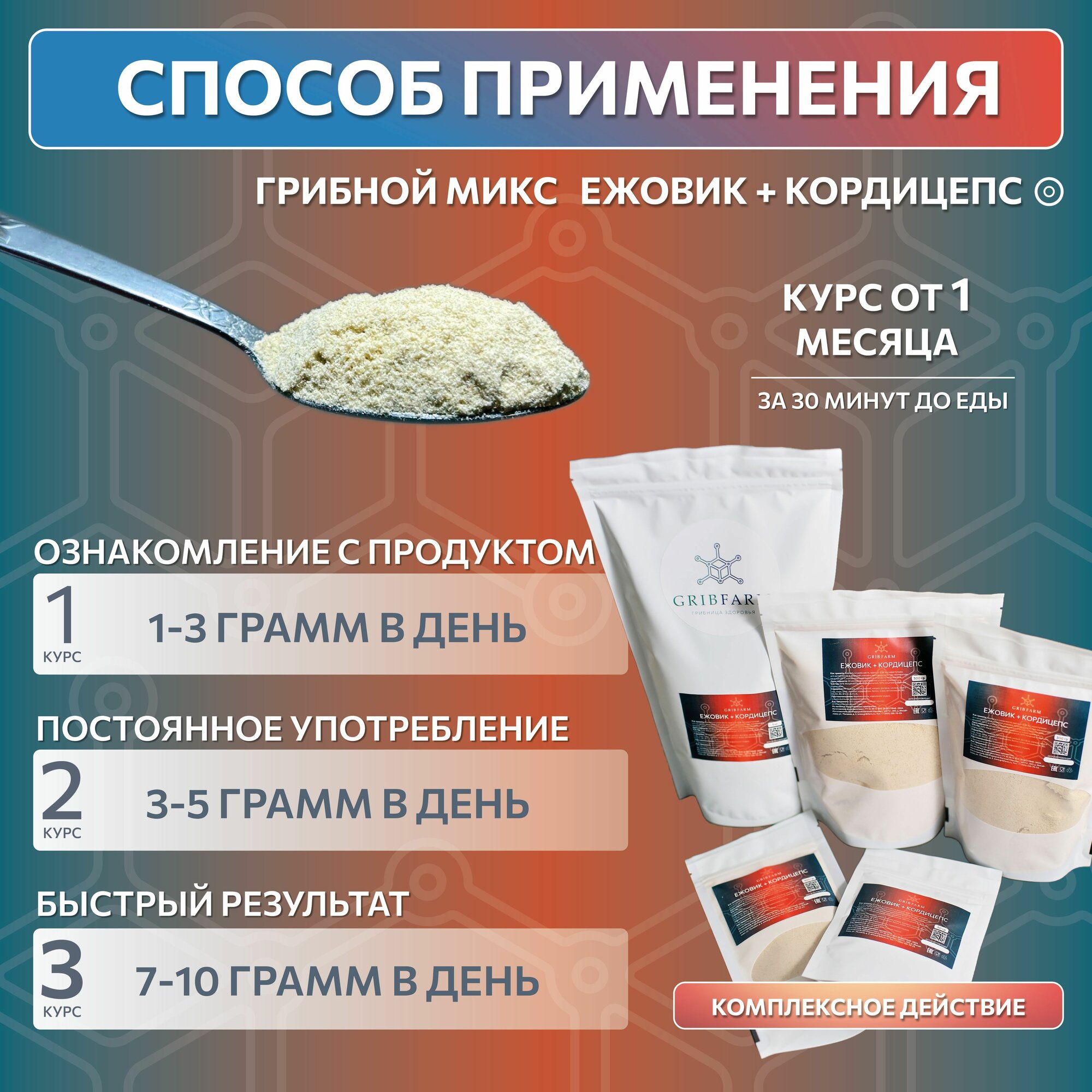 Грибы Ежовик гребенчатый + Кордицепс милитарис / Ноотроп 500гр