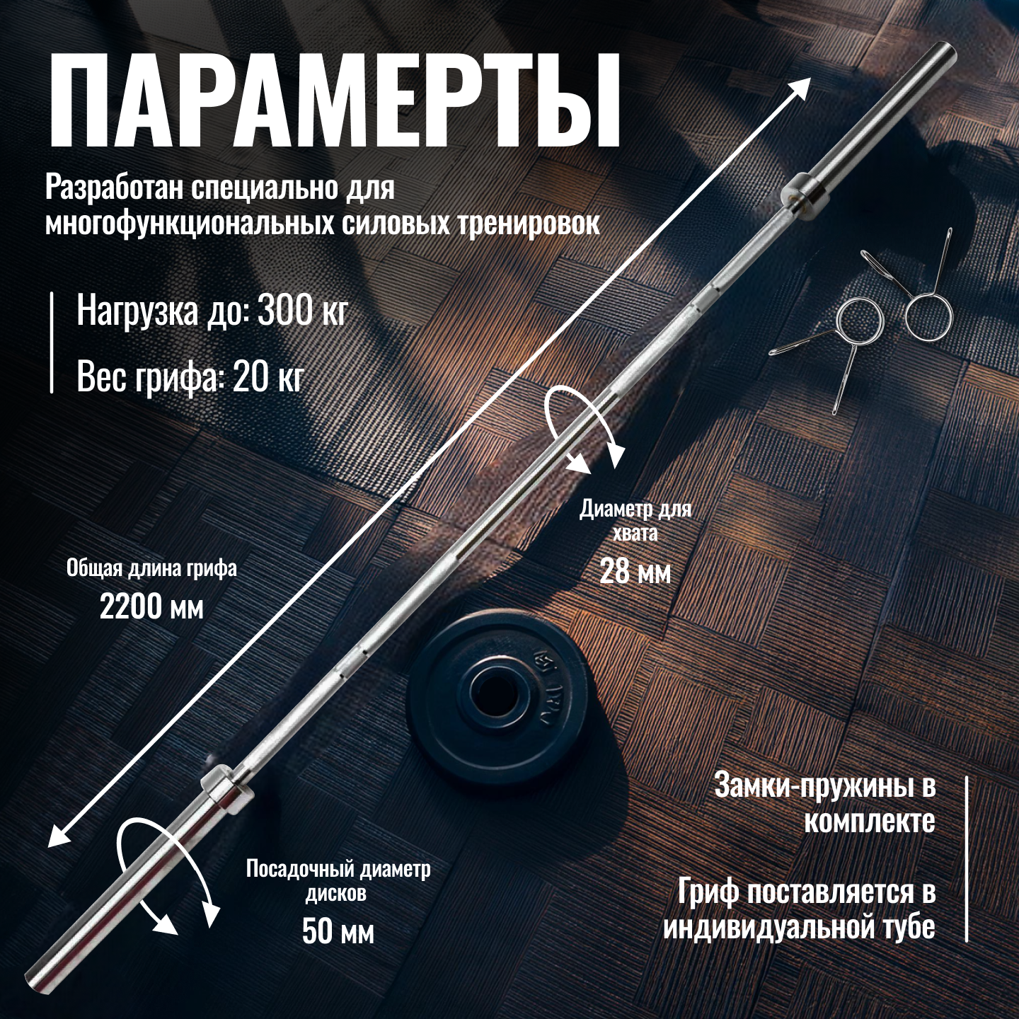 Гриф Hurricane длиной 2200 мм – идеальный выбор для любителей тяжелой атлетики и профессиональных спортсменов. Этот высококачественный гриф способен выдержать нагрузку до 300 кг, что делает его подходящим для интенсивных тренировок и выполнения различных силовых упражнений. Изготовленный из прочного материала, гриф обеспечивает отличную стабильность и надежность во время занятий. Удобные и надежные захваты позволяют уверенно держать штангу, а особая обработка поверхности предотвращает скольжение, способствуя безопасной тренировке. Длина 220 см делает этот гриф универсальным инструментом для создания различных спортивных комплексов и выполнения множества упражнений. Вы можете использовать его для становых тяг, жимов лежа, приседаний и многих других упражнений, что идеально подходит как для домашнего спорта, так и для профессиональных залов. Гриф легко комбинируется с различными блинами и аксессуарами, что позволяет вам подбирать необходимую нагрузку и разнообразить тренировки. Независимо от вашего уровня подготовки, этот гриф поможет достичь новых высот в тренировках. Если вы ищете надежный и универсальный инвентарь для тяжелой атлетики, гриф Hurricane – это то, что вам нужно. Поддержите свой спортивный прогресс с помощью этого качественного инвентаря, который создан для серьезных нагрузок и активных тренировок.