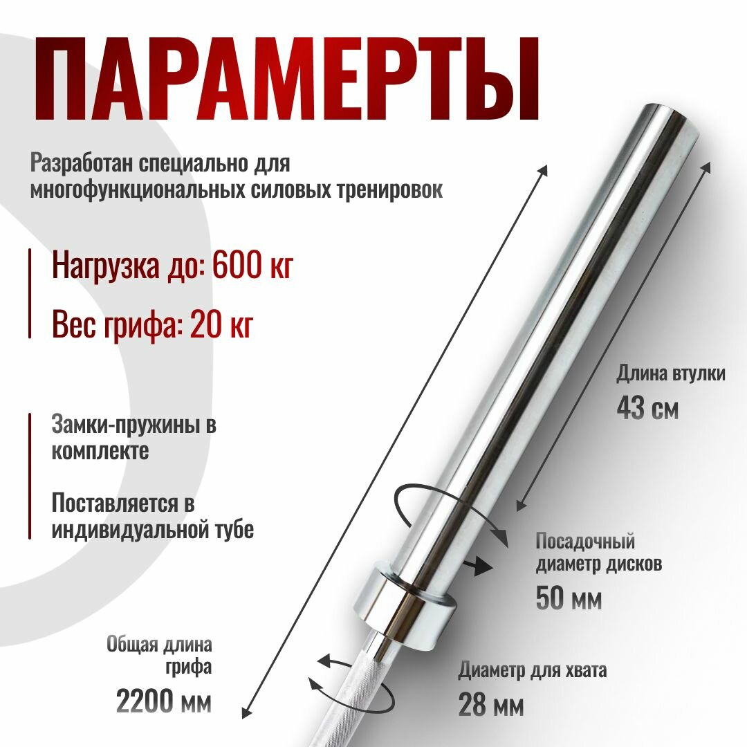 Купить Гриф 220 см (нагрузка 600кг) с доставкой по всей России. Гриф 220 см (нагрузка 600кг): сравнение цен, характеристики, фото, актуальное наличие и цены.