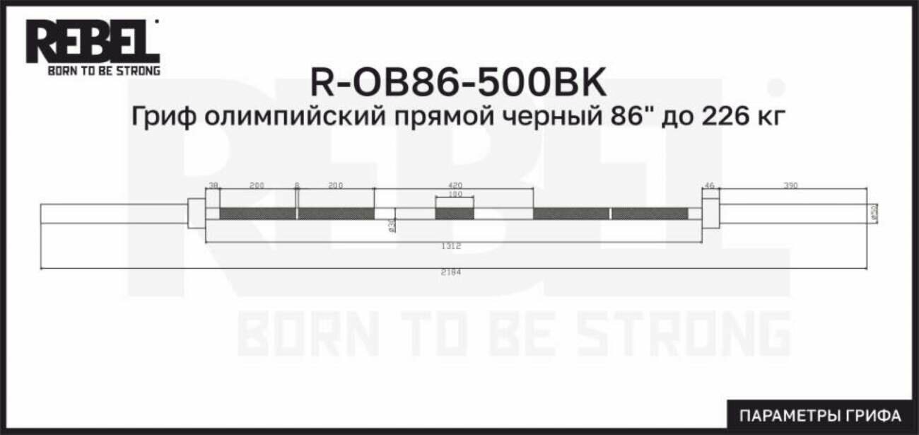 Купить Гриф для штанги олимпийский прямой черный, 86″ до 226 кг, REBEL (SP/R-OB86-500BK) с доставкой по всей России.